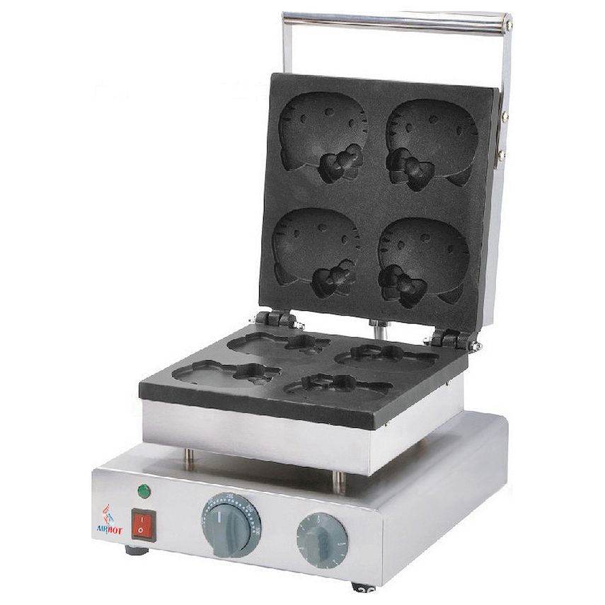 Вафельница AIRHOT WBHK-4 HELLO KITTY предназначена для выпекания вафель в форме главного героя мультфильмов на предприятиях общественного питания и торговли. Каждая вафля может быть наполнена начинкой. Модель оснащена терморегулятором и электронным таймером. Корпус выполнен из нержавеющей стали, жарочная поверхность - из чугуна с антипригарным покрытием.