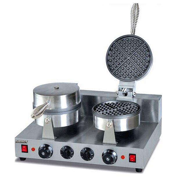 Вафельница AIRHOT WE-1D ДВОЙНАЯ используется для выпекания бельгийских вафель в форме сегментов 1/4 круга на предприятиях общественного питания и торговли. Модель оснащена терморегулятором и электронным таймером. Корпус выполнен из нержавеющей стали, жарочная поверхность - из чугуна с антипригарным покрытием.