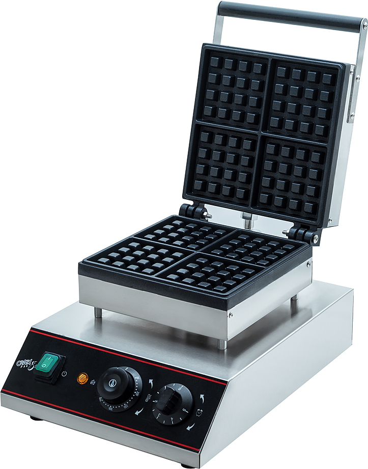 Вафельница Crazy Pan CP-WFM02 применяется для изготовления квадратных бельгийских вафель на предприятиях общественного питания и торговли. Модель оснащена терморегулятором, 2 ТЭНами и звуковым таймером на 5 минут. Корпус выполнен из нержавеющей стали, рабочая поверхность - из чугуна с антипригарным покрытием.