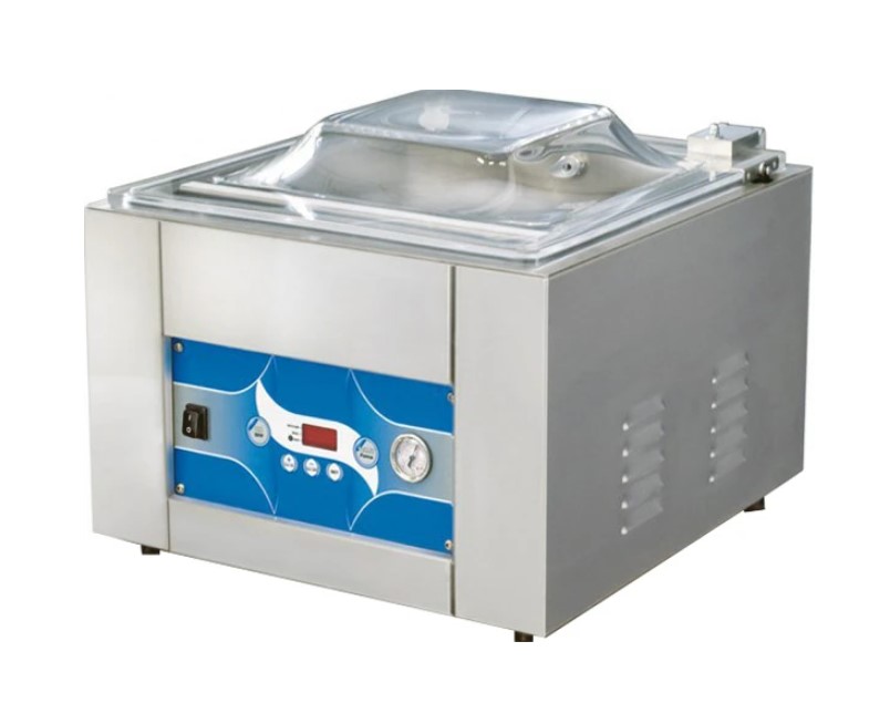 Процесс упаковки происходит в таком порядке: оператор укладывает продукт в прочный пакет, помещает его открытой стороной под термоусадочную планку в камеру, из него удаляется весь воздух, затем сварочная планка запаивает пакет с помощью высокой температуры. Два последних действия осуществляются в автоматическом режиме.