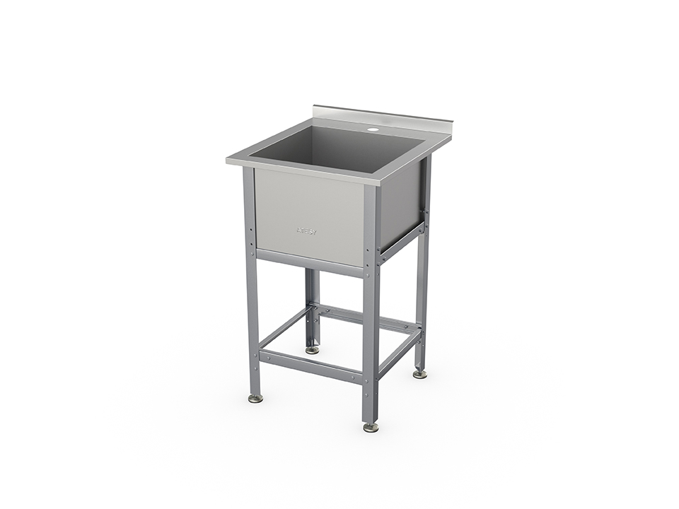 Ванна из нержавеющей стали AISI 430 толщиной 0,7 мм, опорная ножка из пластика, опоры регуляторов высоты ножек из нержавеющей стали.