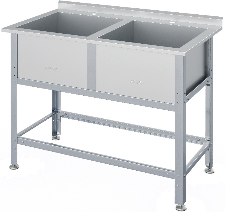 Ванна Atesy ВСМ-Б-2.600-1-02 (ВМ-2/600 с бортом) используется на предприятиях общественного питания и торговли для мытья столовой и кухонной посуды, инвентаря, овощей и фруктов, а также для оттайки замороженных пищевых продуктов. Ванна из нержавеющей стали AISI 430 толщиной 0,7 мм, опорная ножка из пластика, опоры регуляторов высоты ножек из нержавеющей стали.