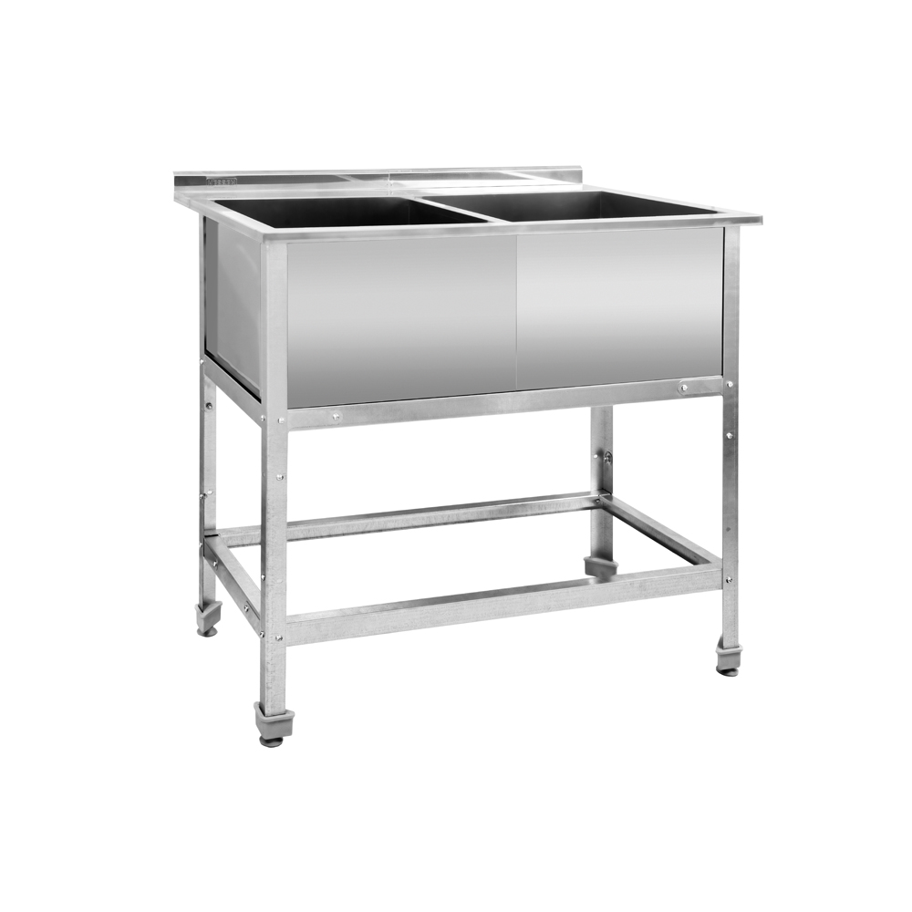 Ванна Hessen (Мартэл) ВМП 2/7 оц. сварная двухсекционная, с бортом и полкой под смеситель (без отверстий под смеситель). Ёмкость ванны выполнена из нержавеющей стали марки AISI430. Углы ванны заварены и зашлифованы. Каркас ванны может быть выполнен из крашенной/оцинкованной/нержавеющей стали. Стойки каркаса — уголок. Обвязка с 4-х сторон. Все кромки ванны имеют подгиб, что полностью исключает получение травмы персоналом при сборке, эксплуатации и санитарной обработке ванны. Опорные ножки регулируются по высоте.