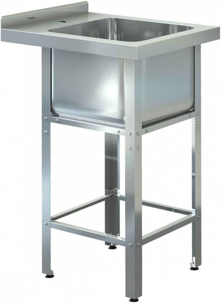 Ванна моечная Assum ВМЦ-С-1/400 Н (500х600х850) (глуб.250) пристенная открытая сборно-разборная, серии Стандарт, с бортом высотой 45мм, 1 цельнотянутой мойкой из нержавеющей стали AISI 304 толщиной 1мм, столешницей из нержавеющей стали AISI 430 толщиной 1мм, оснащена разборным каркасом из оцинкованной стали (уголок 40х40мм) толщиной 1,5мм, обвязкой с 4-х сторон из оцинкованной стали, отверстием под смеситель, регулируемыми по высоте пластиковыми опорами.