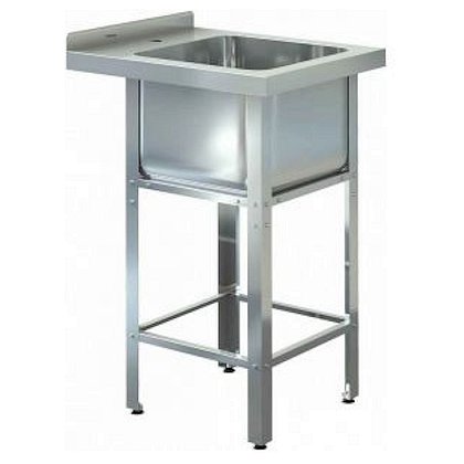 Ванна моечная пристенная открытая сборно-разборная, серии Standart, с бортом высотой 45мм, 1 цельнотянутой мойкой из нержавеющей стали AISI 304 толщиной 1мм, столешницей из нержавеющей стали AISI 430 толщиной 1мм, оснащена разборным каркасом из оцинкованной стали (уголок 40х40мм) толщиной 1,5мм, обвязкой с 4-х сторон из оцинкованной стали, отверстием под смеситель, регулируемыми по высоте пластиковыми опорами. В комплекте выпуск. Размеры мойки - 500х500х300мм. Отступ задних ног - 150мм. Ножки отгружаются отдельно.