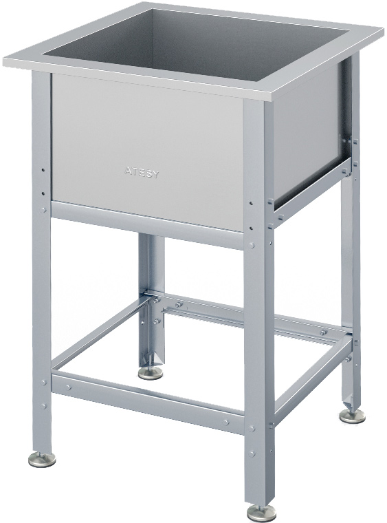 Сварная ванна из нержавеющей стали AISI 430 толщиной 0,7 мм, опорная ножка из пластика, опоры регуляторов высоты ножек из нержавеющей стали.