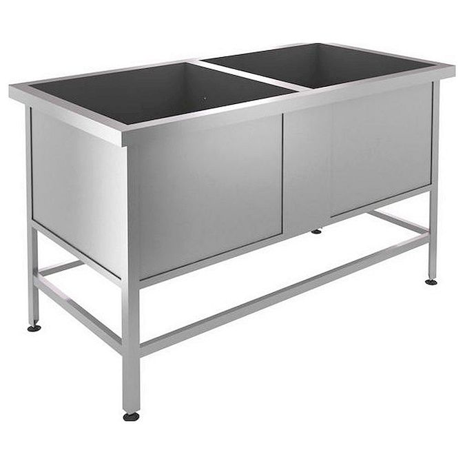 Ванна моечная CRYSPI ВМЦ S 2 (L=1050, S=530, H=870, G=300) используется для мойки различной посуды, а также продуктов на предприятиях общественного питания и торговли. Каркас выполнен из оцинкованной стали, емкость мойки - из нержавеющей стали AISI 304.