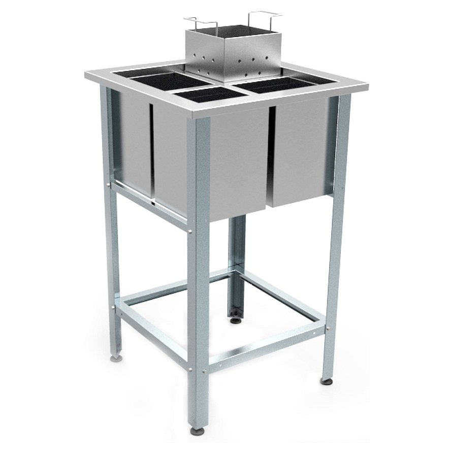 Сварной каркас выполнен из оцинкованного стального уголка, раковины - из нержавеющей стали AISI 430.