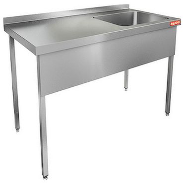 Ванна из нержавеющей стали AISI 430 оснащена одной секцией справа и бортиком, защищающим стенку от намокания. Можно дополнительно заказать отверстие под смеситель и комплект фартуков из трех штук.