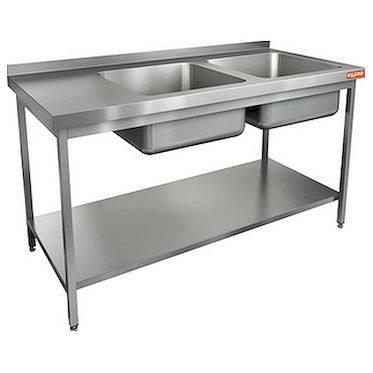 Ванна HICOLD НСО2М-14/6БПП ЭЦ используется для мойки ложек, вилок, тарелок, кастрюль, сковородок, противней и другой посуды, а также для гигиены процесса приготовления пищи. Оборудование оснащено 2 секциями справа, каркасом из оцинкованного уголка, сплошной полкой и бортиком, защищающим стенку от намокания.
