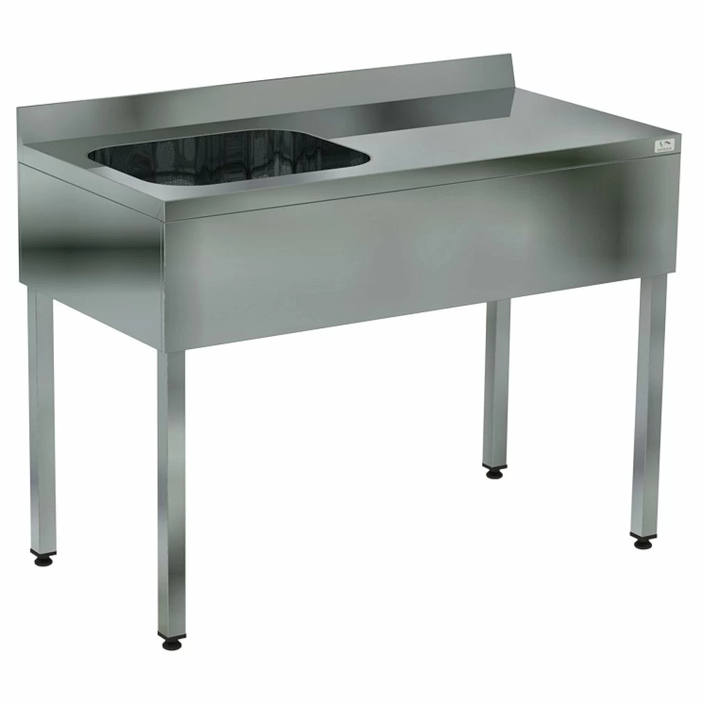 Ванна моечная цельнотянутая односекционная с рабочей поверхностью КОБОР ВМЦФР/1-140/70 Л/П  применяется на предприятиях общественного питания для мытья кухонного инвентаря и оттайки замороженных пищевых продуктов.