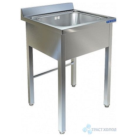 Ванна состоит из односекционной цельнотянутой ёмкости мойки и каркаса. Мойка ванны цельнотянутая с шумопоглощающей изоляцией снизу, выполнена из пищевой нержавеющей стали марки AISI 304 толщиной 1мм и имеет отгибы, которые исключают травмирование персонала, а также объемный пристенный борт. Каркас изготовлен из нержавеющей стали марки AISI 304. Ножки ванны снабжены регуляторами высоты, что позволяет устранить неровности пола. Ванны комплектуются сифоном с переливом, нержавеющим выпуском с решеткой диаметром 90мм, диаметр выходного отверстия в сифоне 50мм.