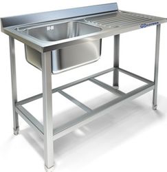 Каркас выполнен из уголка из стали AISI 430, емкость и рабочая поверхность - из нержавеющей стали AISI 304.