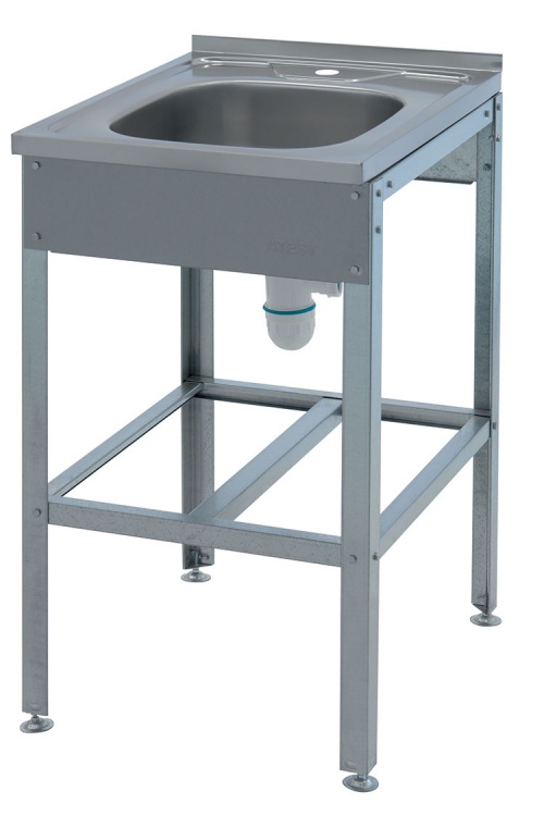 Ванна-раковина Atesy ВР-600 выполнен из нержавеющей стали марки AISI 430 толщиной 0,5 мм, имеет борт с пристенной стороны и отверстие под смеситель. Каркас разборный, выполнен из оцинкованной стали толщиной 1,2 мм. Стойки каркаса представляют собой уголок 40х40 мм с подгибом (фальцовкой) кромок для увеличения жесткости конструкции и исключения травмоопасности. Снизу каркас усилен перемычкой и обвязкой по периметру из оцинкованной стали толщиной 1,2 мм. Опорные ножки регулируются по высоте в даипозоне ±20 мм и изготовлены из нержавеющей стали с пластиковой подложкой внизу для предотвращения повреждения пола. Ванна укомплектована сливным сифоном с гидрозатвором.