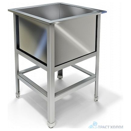 Ванна состоит из одной сварной ёмкости мойки и каркаса. Мойка ванны сварная, выполнена из пищевой нержавеющей стали марки AISI 304 толщиной 0,8 мм и имеет отгибы, которые исключают травмирование персонала. Каркас сварной из уголка нержавеющей стали AISI 430 или AISI 403 толщиной 2 мм, или сварной (Р-разборный) из профиля толщиной 2мм, покрытого порошковой краской серого цвета. Ножки ванны снабжены регуляторами высоты, что позволяет устранить неровности пола. Ванны комплектуются нержавеющим выпуском с решеткой диаметром 90 мм, диаметр выходного отверстия в сифоне 50 мм.