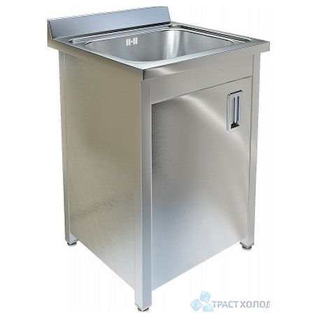 Ванна состоит из односекционной цельнотянутой ёмкости мойки и каркаса. Мойка ванны цельнотянутая с шумопоглощающей изоляцией снизу, выполнена из пищевой нержавеющей стали марки AISI 304 толщиной 1мм и имеет отгибы, которые исключают травмирование персонала, а также объемный пристенный борт. Каркас изготовлен из нержавеющей стали марки AISI 304, имеется распашная дверь. Ножки ванны снабжены регуляторами высоты, что позволяет устранить неровности пола. Ванны комплектуются сифоном с переливом, нержавеющим выпуском с решеткой диаметром 90 мм, диаметр выходного отверстия в сифоне 50 мм.