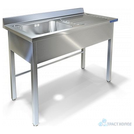 Ванна состоит из односекционной цельнотянутой ёмкости мойки со столом для сушки посуды и каркаса. Мойка ванны цельнотянутая с шумопоглощающей изоляцией снизу, выполнена из пищевой нержавеющей стали марки AISI 304 толщиной 1 мм и имеет отгибы, которые исключают травмирование персонала, а также объемный пристенный борт. Каркас изготовлен из нержавеющей стали марки AISI 304. Ножки ванны снабжены регуляторами высоты, что позволяет устранить неровности пола. Ванны комплектуются сифоном с переливом, нержавеющим выпуском с решеткой диаметром 90 мм, диаметр выходного отверстия в сифоне 50 мм.