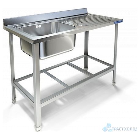 Ванна состоит из односекционной цельнотянутой ёмкости мойки со столом для сушки посуды и каркаса. Мойка ванны цельнотянутая с шумопоглощающей изоляцией снизу, выполнена из пищевой нержавеющей стали марки AISI 304 толщиной 1мм и имеет отгибы, которые исключают травмирование персонала, а также объемный пристенный борт. Каркас сварной из профиля толщиной 2мм, из нержавеющей стали AISI 304. Ножки ванны снабжены регуляторами высоты, что позволяет устранить неровности пола. Ванны комплектуются сифоном с переливом, нержавеющим выпуском с решеткой диаметром 90мм, диаметр выходного отверстия в сифоне 50мм.