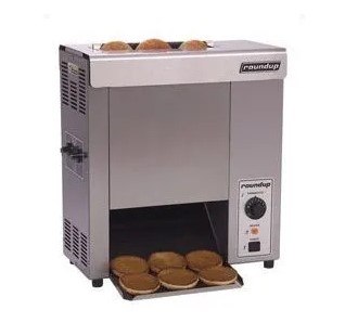 Вертикальный тостер Roundup VCT-25 для хлебных ломтиков и гамбургерных булочек. Загрузка продукта происходит в верхней части, а извлечение - из нижней. Прожарка происходит через тефлоновый лист, что исключает высушивание продукта внутри и обеспечивает равномерную карамелизацию поверхности булочки. Легко регулируемый механический термостат, возможность регулировки прижатия булочки к листу в зависимости от ее толщины. Время прохождения булочки через тостер - 25 секунд.