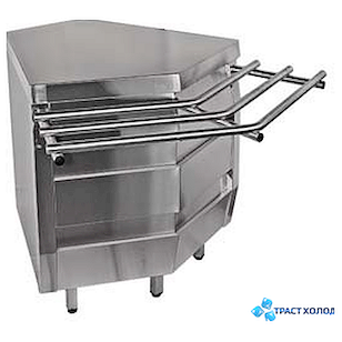 Прилавки угловые изготавливаются в двух видах и типоразмерах. Внешние угловые прилавки (45° и 90°) и внутренние угловые прилавки (45° и 90°). Эти элементы позволяют проектировать и исполнять гибкие формы расстановки линии в зависимости заявленных к исполь-зованию площадей клиента.