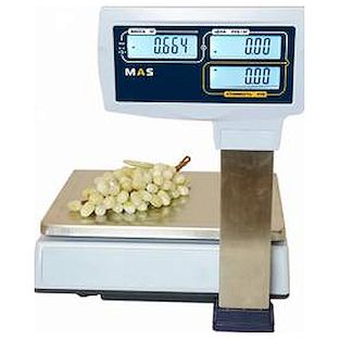 Весы электронные торговые со стойкой MAS MR1-06P используются на предприятиях общественного питания и торговли для точного взвешивания различных товаров и продуктов питания. Модель оснащена мембранной влагостойкой клавиатурой, ярким ЖК-дисплеем с размером символов 18 мм и дисплеем для покупателя на стойке. Платформа выполнена из нержавеющей стали.