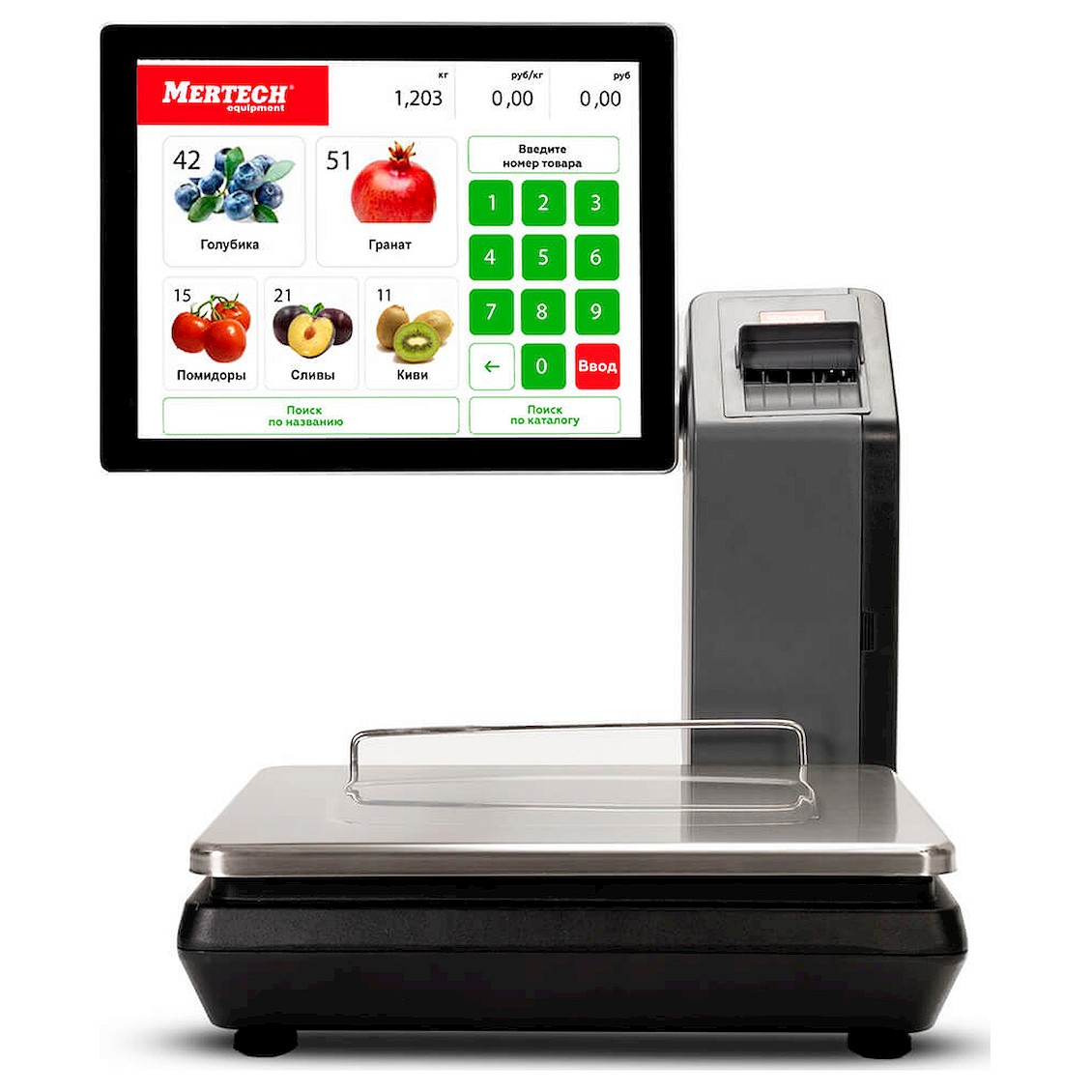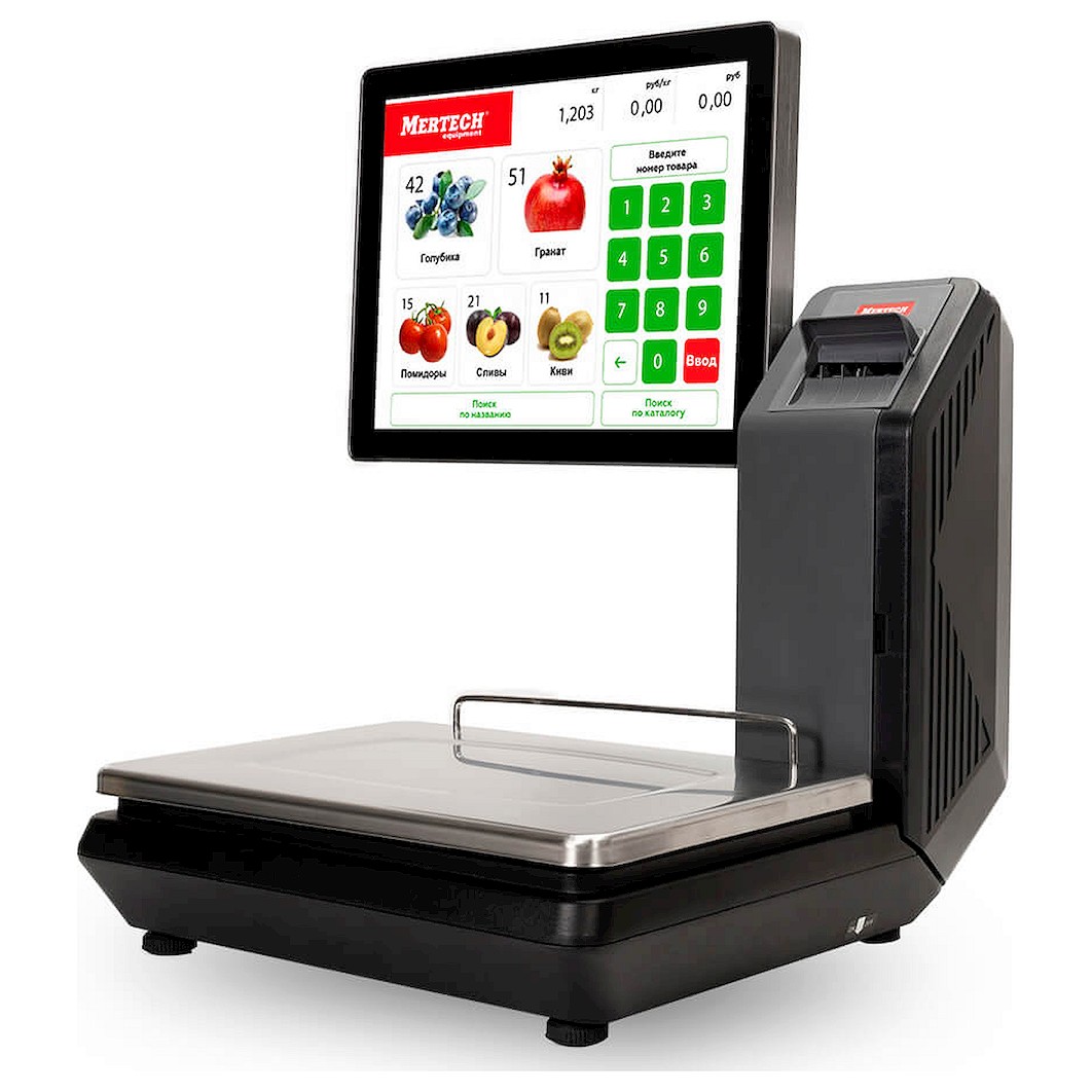 В этой модели реализовано интуитивно понятное меню. Встроенный термопринтер быстро печатает этикетки. Удобные весы в торговом зале повышают лояльность покупателей к магазину.