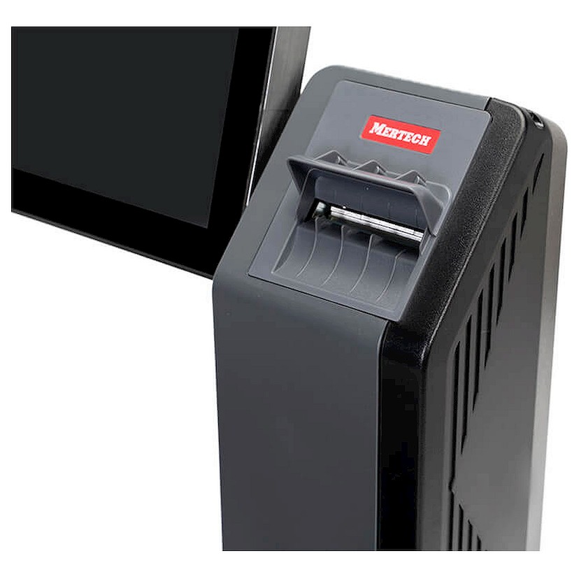 Печатающий механизм находится внутри стойки-держателя. В конструкции нет съемной крышки, которая могла бы потеряться. Установка принтера в отдельном вертикальном корпусе позволяет уменьшить риск поломки механизма.
