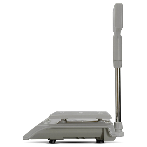 • Торговые весы доступны в двух вариантах. На этой странице модель с максимально допустимой массой 15 кг. Для управления взвешиванием служит мембранная клавиатура.