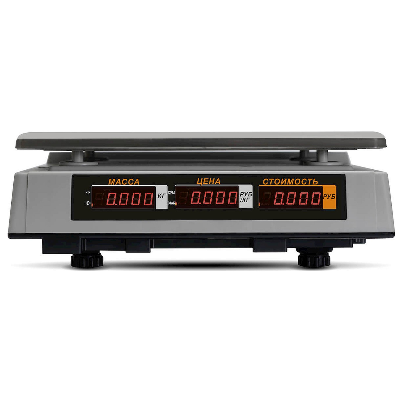 Предусмотрено автоматическое обнуление результата. Итоги выводятся на яркий два LED-дисплея с передней и задней панели весов. Результаты видны и продавцу, и клиенту. На каждом из 2 табло есть 16 разрядов индикации. Размеры цифр: 15*8 мм или 15*6 мм.