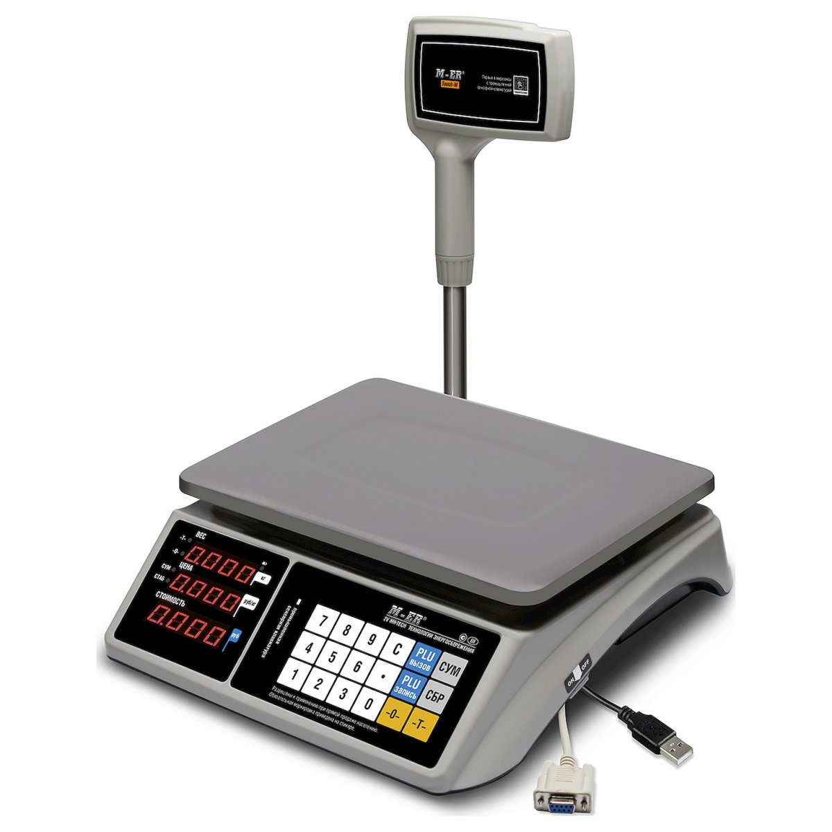M-ER 328 ACPX-6.1 "TOUCH-M" LED RS232 и USB — это торговые весы со стойкой. Они применяются для взвешивания и фасовки товара, расчета цены партии и суммы сдачи. Результаты выводятся на LED экраны. Устройство можно подключить к ПК, онлайн-кассе, POS-системе по USB или RS232. Цвет корпуса: белый.