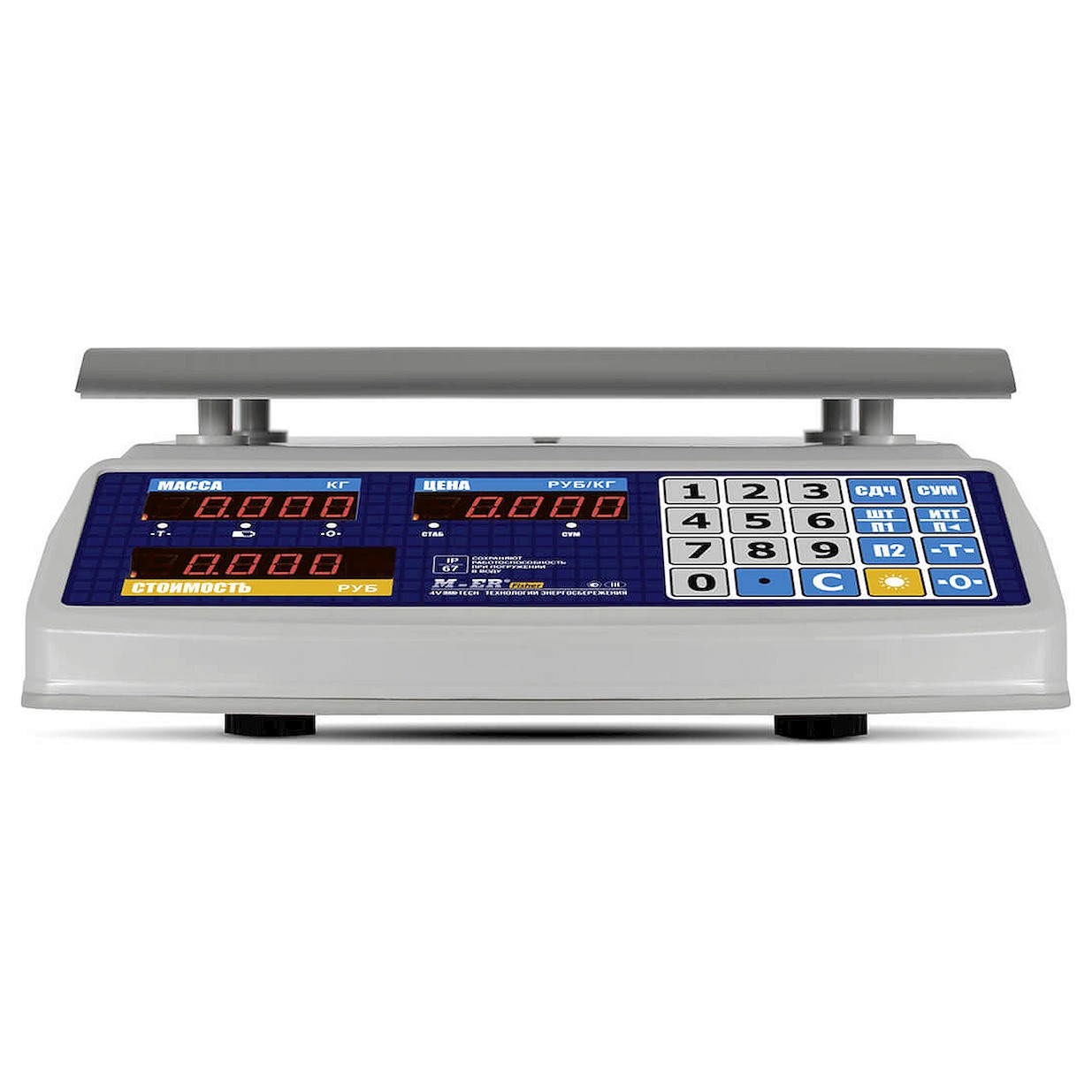 • Итоговые цифры хорошо видны и продавцу, и клиентам. На индикаторах «МАССА» И «ЦЕНА» предусмотрено 5 разрядов индикации, на индикаторе «СТОИМОСТЬ» - 6 разрядов. Размер индикаторов – 20*12 мм.