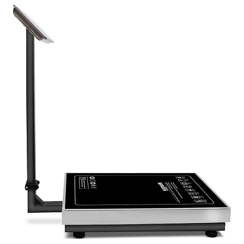 • Табло закреплено на складной стойке. Функция регулировки высоты не предусмотрена. LСD-дисплей содержит 16 разрядов для индикации. Он показывает массу товара, цену за 1 кг и стоимость покупки.