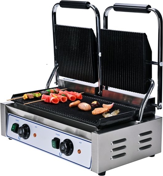 Гриль прижимной Viatto GH-813H предназначен для быстрого обжаривания мяса, птицы, стейков, рыбы, овощей, а также для разогрева продуктов. Благодаря одновременному воздействию рабочих поверхностей продукт обжаривается равномерно с двух сторон, а время приготовления сводится к минимуму. Корпус изготовлен из нержавеющей стали, рабочие поверхности имеют антипригарное покрытие.