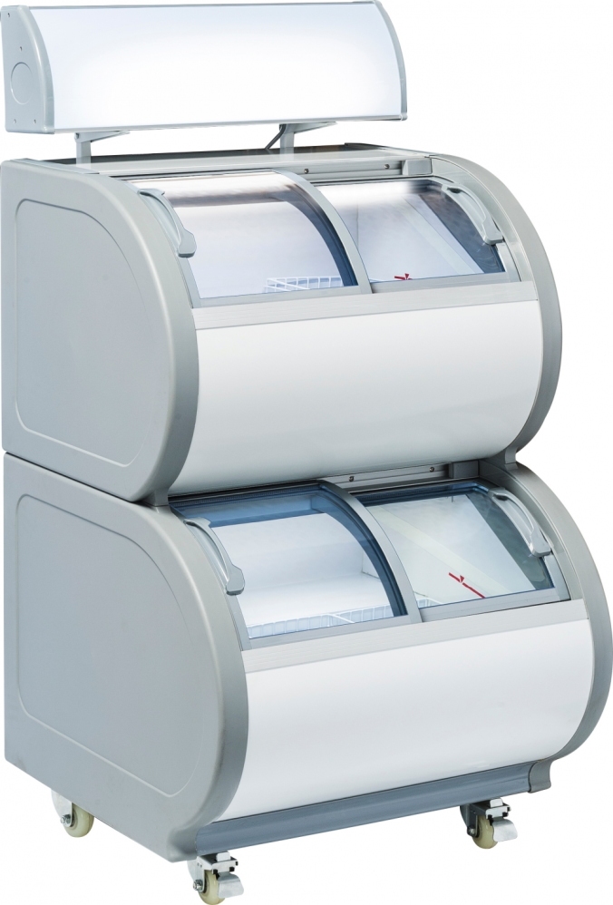 Двухярусный морозильный ларь Viatto TD400LD внешний корпус из металла, внутренний объем из алюминия. Имеет ручную разморозку, LED подсветку.