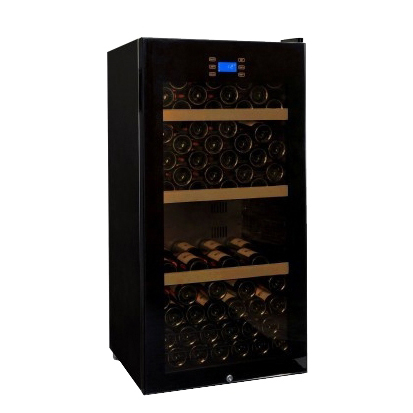 Данная модель имеет температурный режим от 5 до 18 °С, 3 полки, электронную панель управления и вместимость 130 бутылок.
