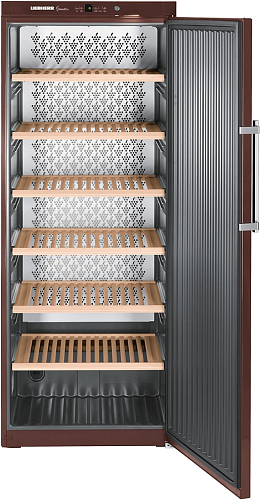 Винный холодильник Liebherr WKt 6451 подходит для долгосрочного и надёжного хранения больших винных запасов. Модель оснащена 6 полками, на них и на дней прибора можно разместить 312 бутылок типа Бордо (0,75 л), которое будет храниться в отличных условиях. Компрессор холодильника работает с минимальной вибрацией, не вредящей вину, и обладает низким уровнем шума.