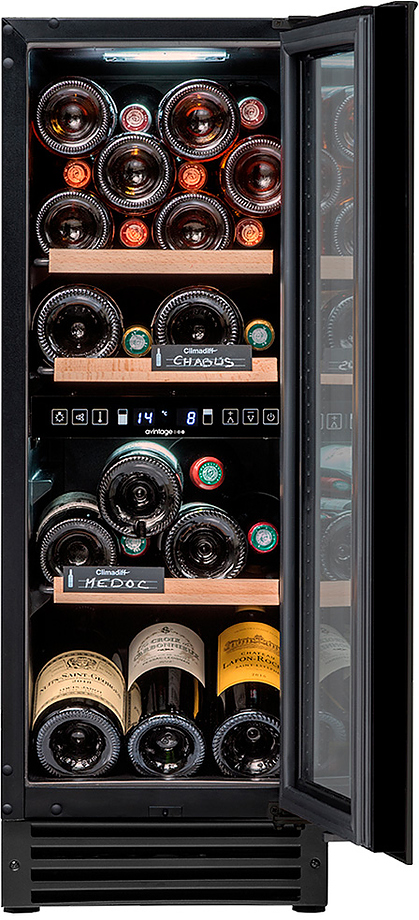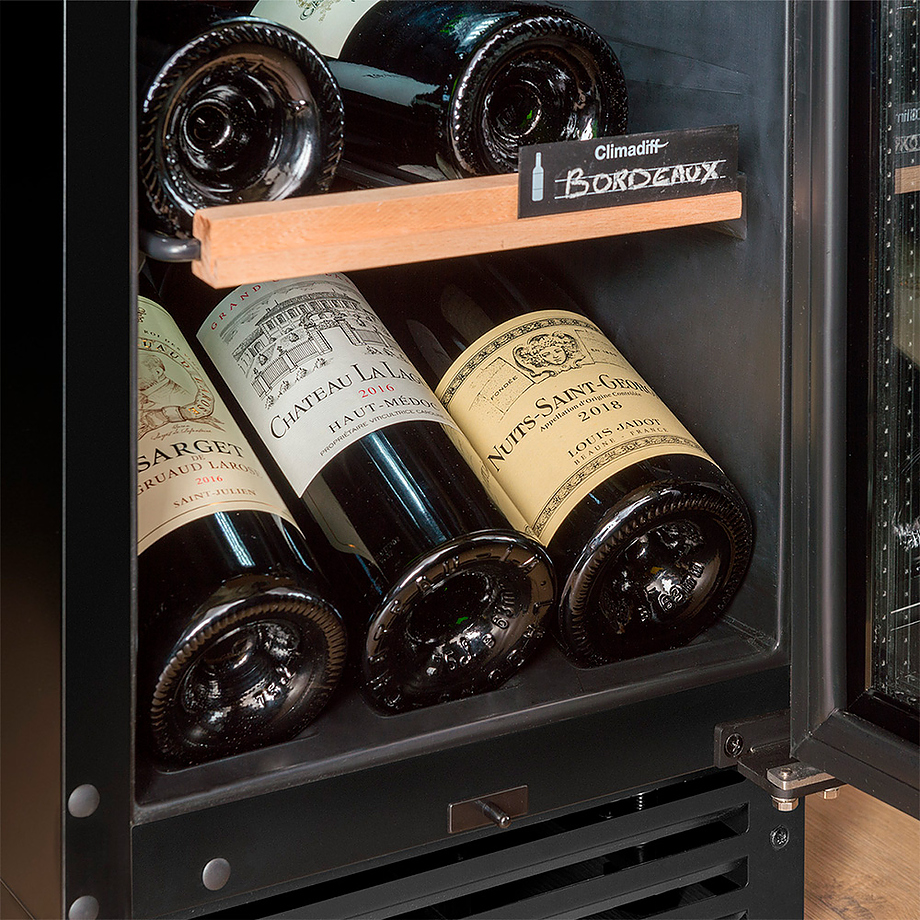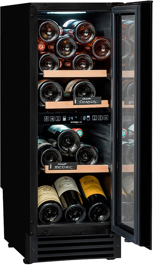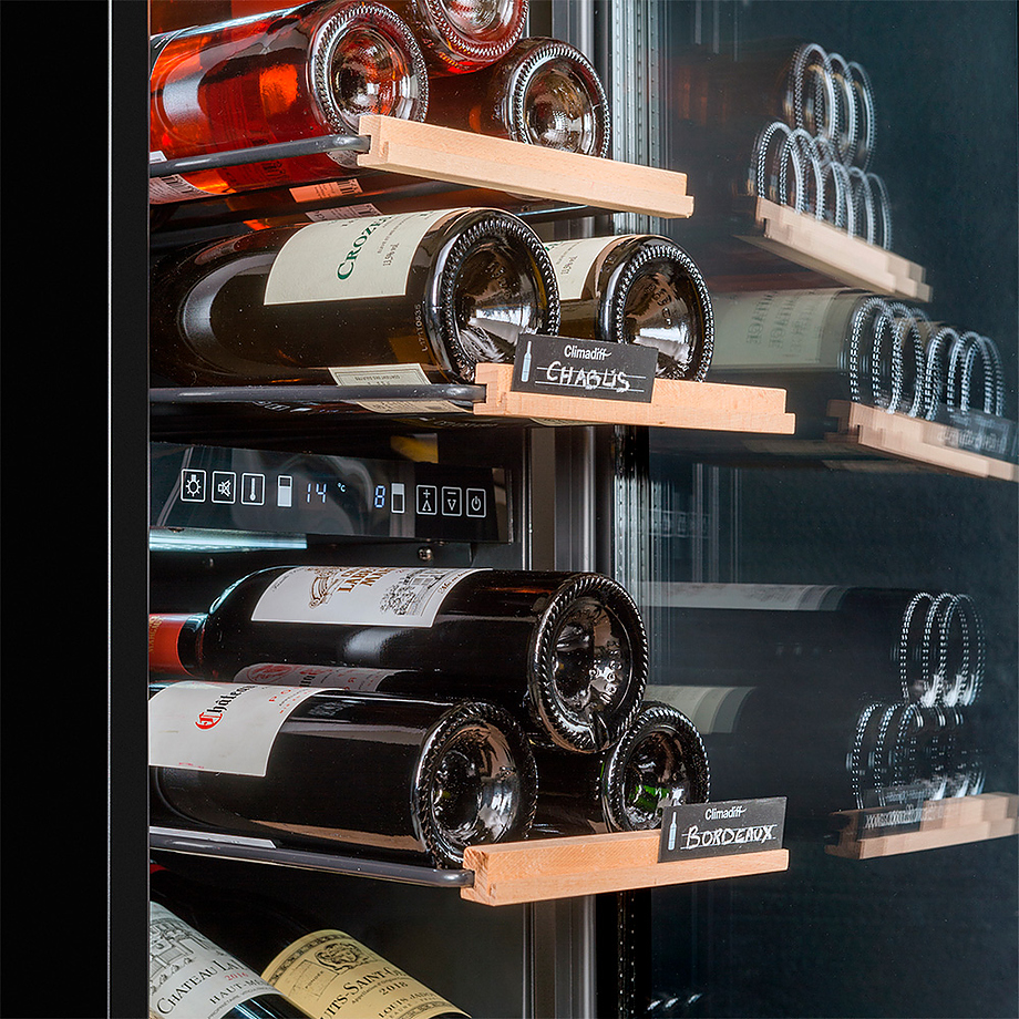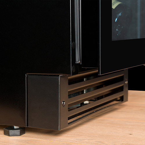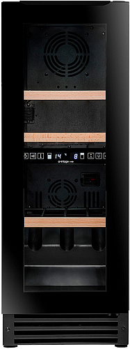 Винный шкаф рассчитан на размещение 25 бутылок (типа Бордо). Оснащен электронным термостатом и удобными полками, позволяющими с легкостью доставать бутылки. Черный цвет позволяют вписать шкаф как в деловую, так и в домашнюю обстановку.