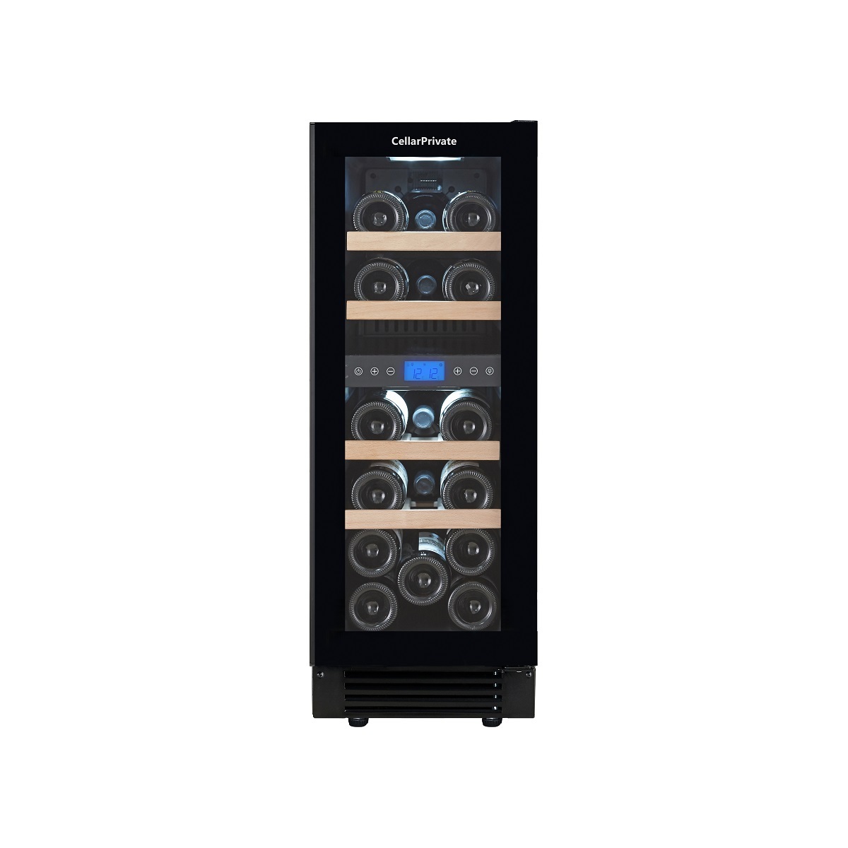 Винный шкаф Cellar Private CP017-2TBH (черная дверь с открытой ручкой) позволяет хранить разные сорта вин благодаря разделению на две климатические зоны, в каждой из которых поддерживается своя температура.