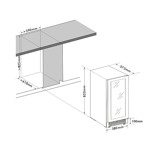 • Минимальные габариты ниши для встраивания: 390х610х830 мм