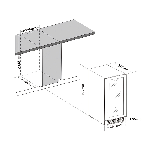 • Минимальные габариты ниши для встраивания: 390х610х830 мм
