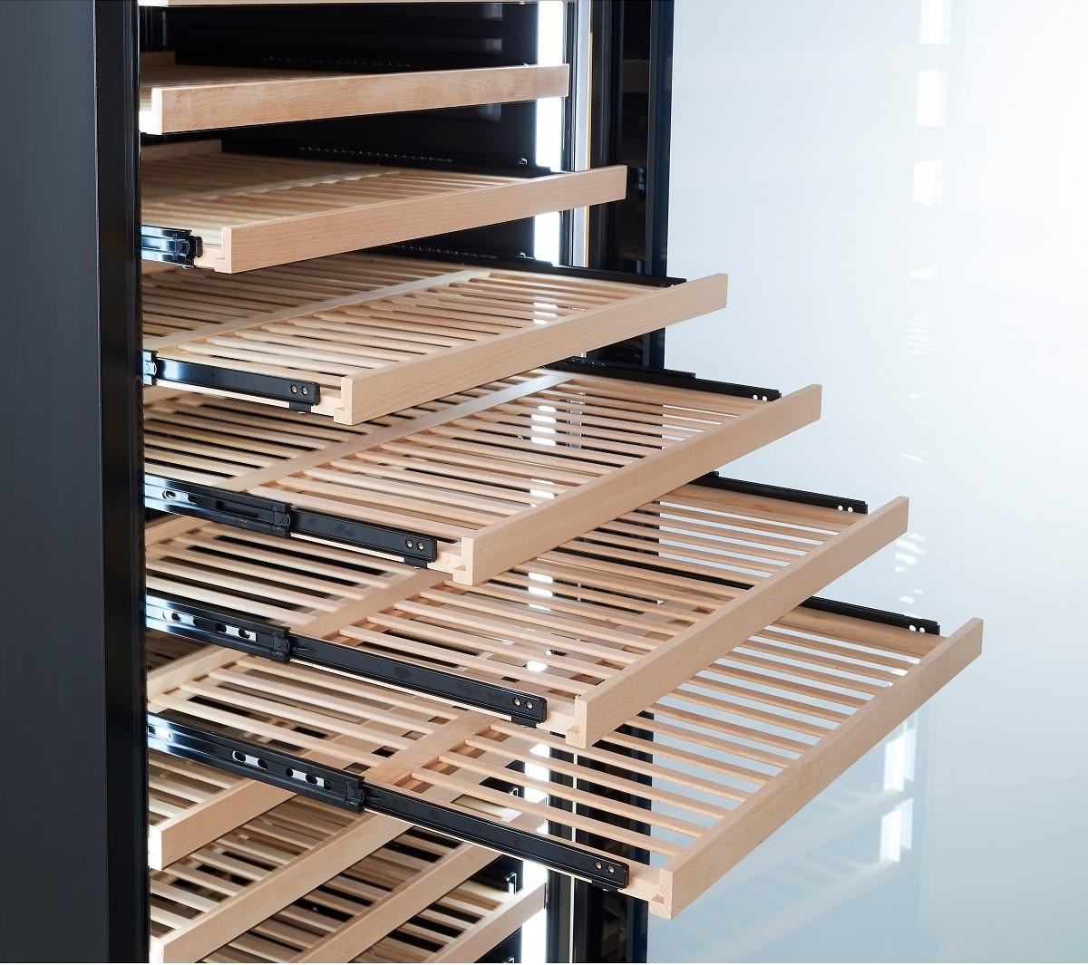 Cellar Private CP344B оснащён 18 деревянными съёмными полками, которые легко адаптируются под любую форму бутылки.
