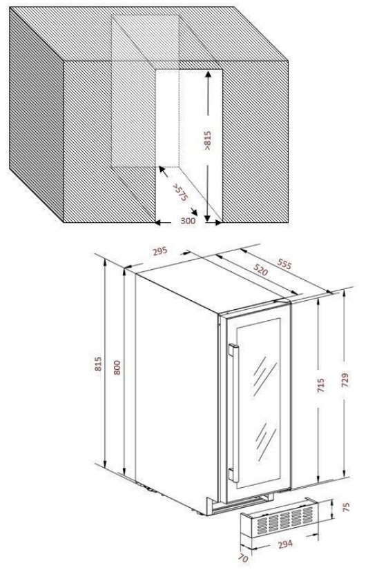 • Размеры ниши (ШхГхВ): 300х577х820 мм