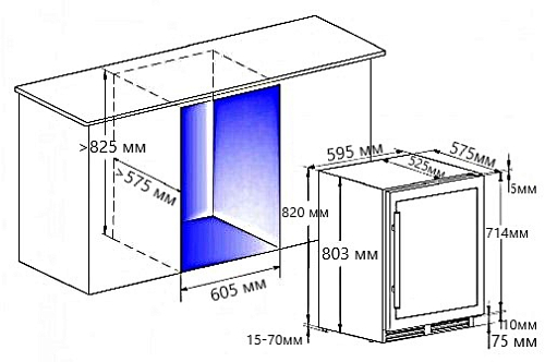 • Размеры ниши (ШхГхВ): 605х585х828 мм