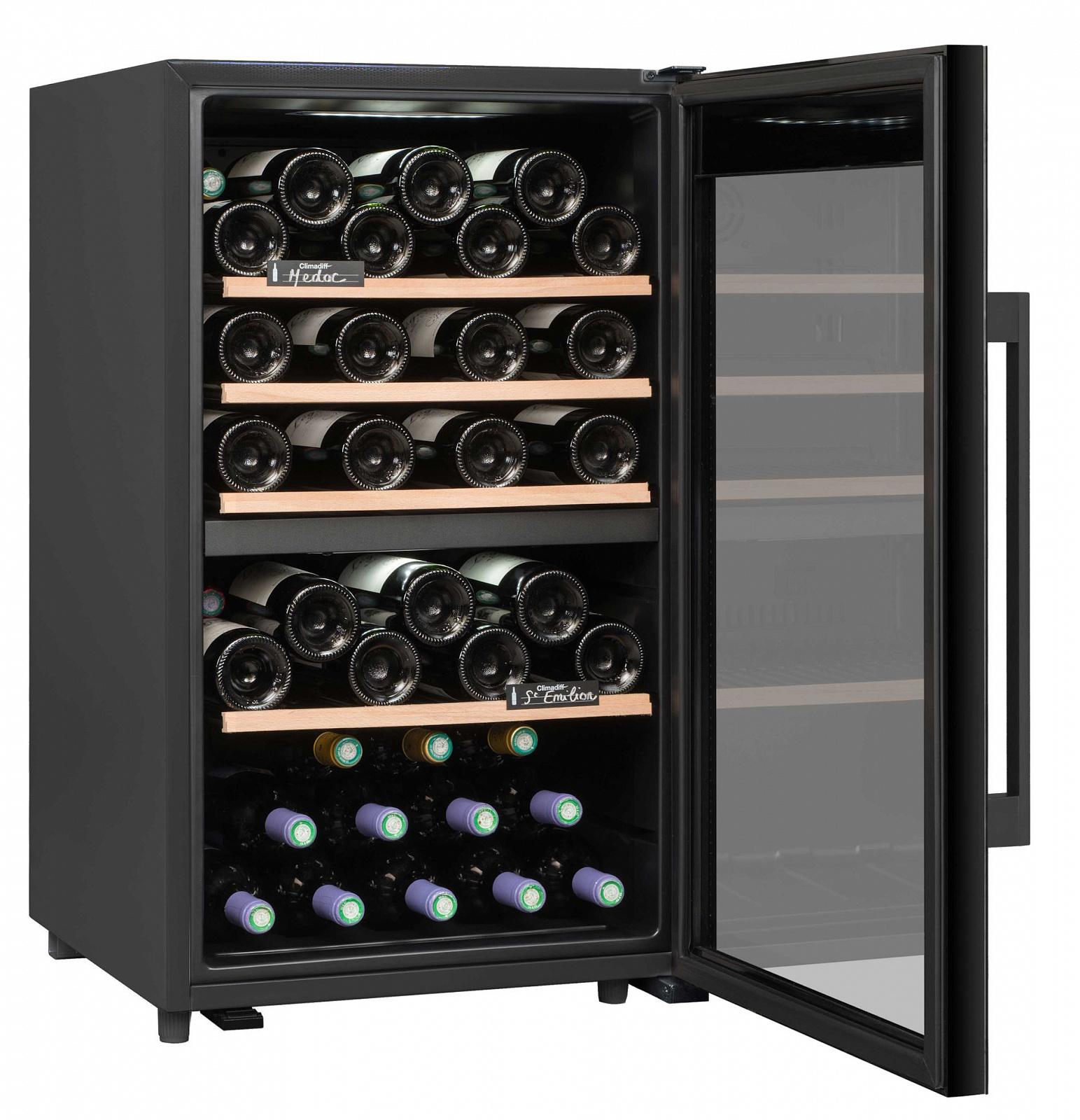 Двухзонный шкаф для вина Climadiff CLD55B1 объёмом в 56 (28+28) бутылок стандартного размера поможет сохранить вашу винную коллекцию в оптимальных условиях. Диапазон температуры хранения, АУФ-защита, а также другие защитные системы гарантируют, что до дегустации ваш любимый напиток дойдёт в лучшем виде.