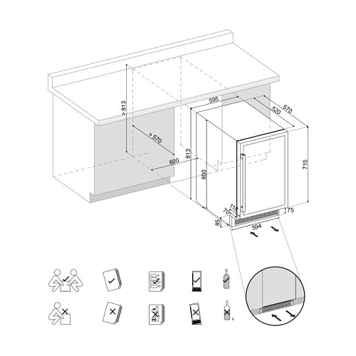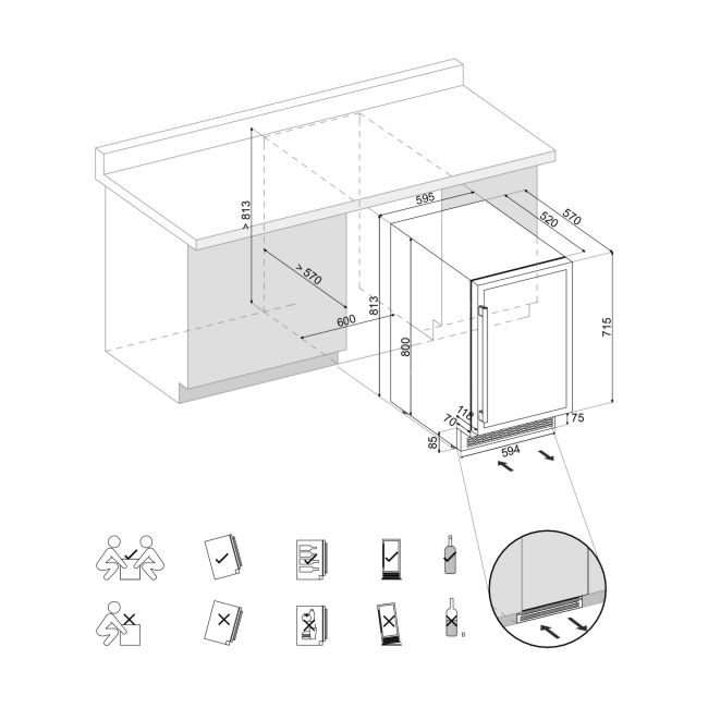 • Минимальный размер ниши для встраивания: 600x570x813 мм