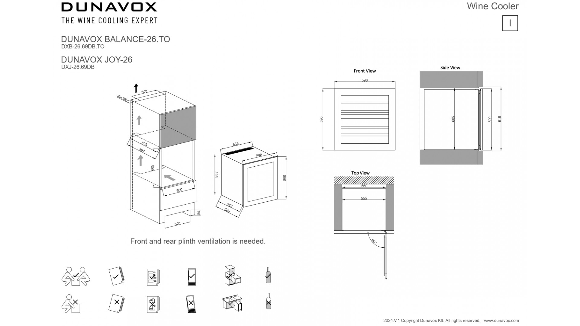 Встраиваемая модель Dunavox DXB-26.69DB.TO вместимостью 26 бутылок — идеальное решение для любителей вина, которые предпочитают качество и стиль. Благодаря современной системе открывания дверей Touch Open, простоте установки и надежной работе он предлагает все необходимое для надежного и правильного хранения коллекции вин.