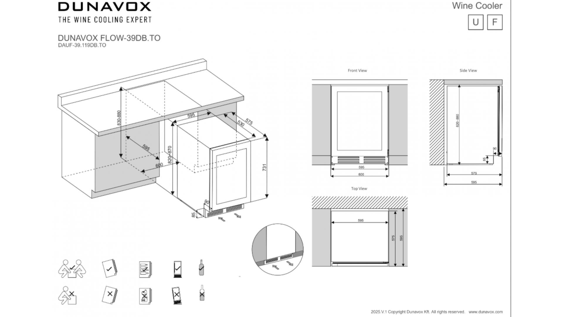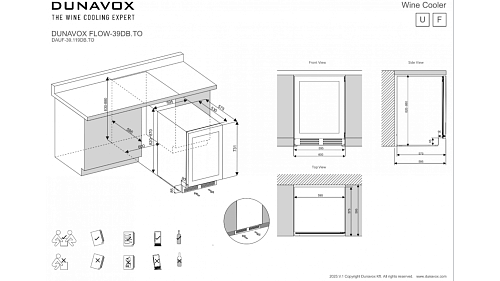 Винный шкаф DAUF-39.119DB.TO входит в серию «FLOW». В линейке представлено оборудование премиум-класса шириной, соответствующей стандартным кухонным модулям, оснащены съемной вентиляционной решеткой, которая находится в нижней части корпуса. Они как устанавливаются под столешницу, так и используются как отдельностоящие устройства. В серию входят модели различных вариациях: со стандартными и скрытыми ручками, а также с инновационной технологией push-to-open (открытие одним нажатием).