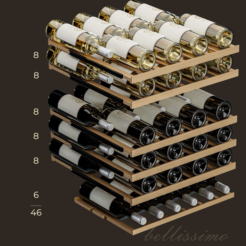 • Вместимость 46 бутылок стандартного типа Бордо (0,75 л);