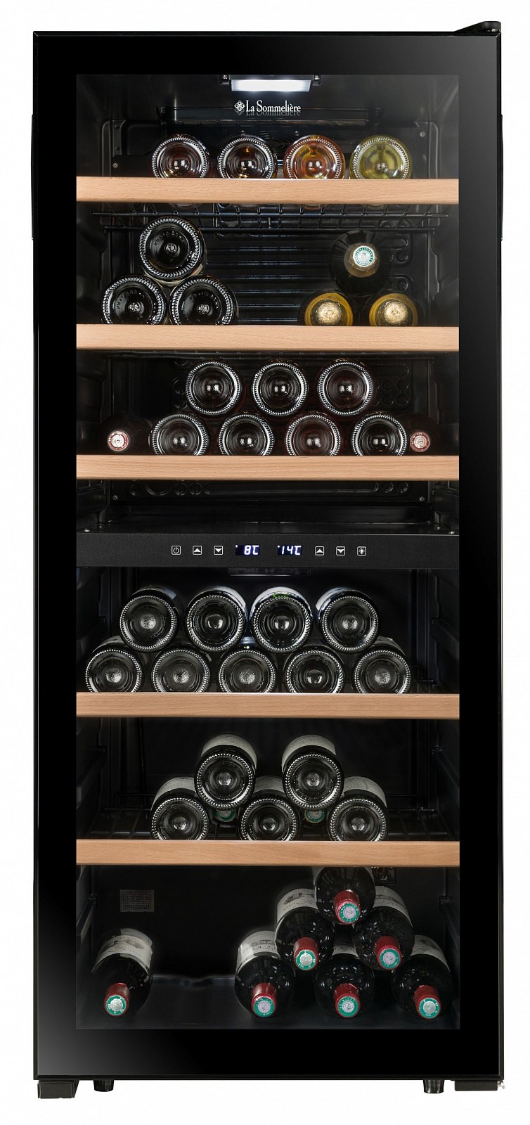 Винный шкаф La Sommeliere LS102DZBLACK создан для хранения 102 бутылок типа Бордо. В двух отдельных зонах можно разместить вина разных сортов.