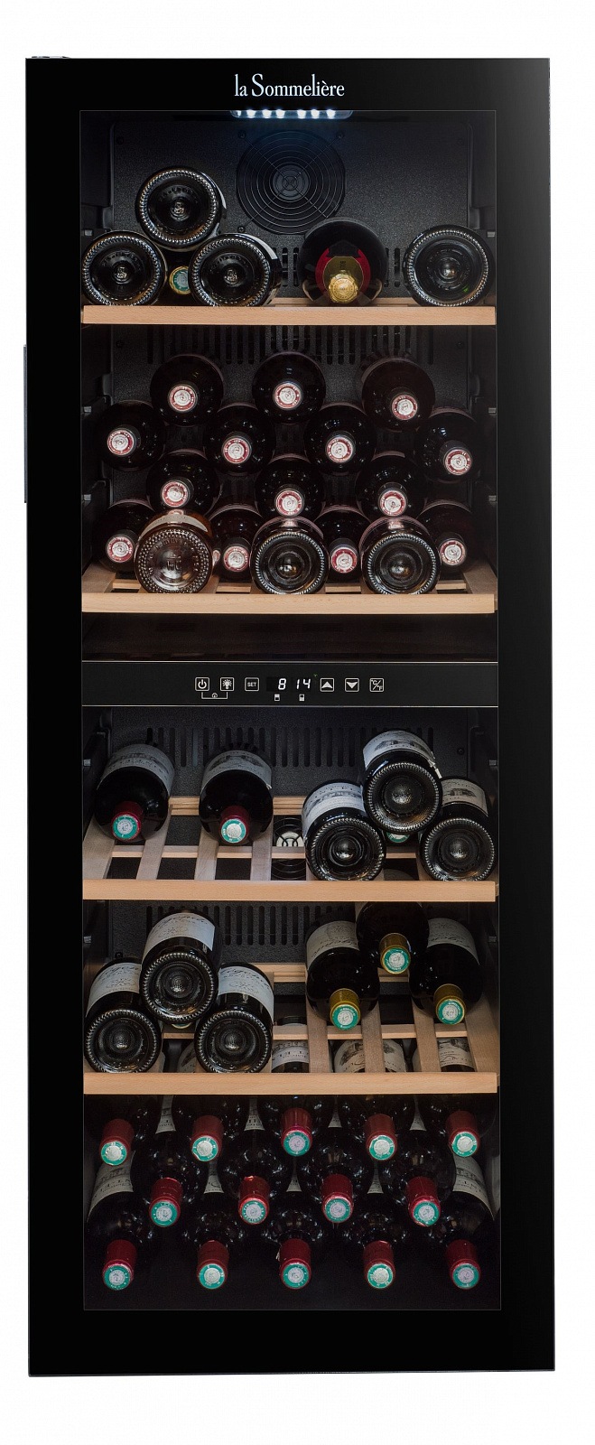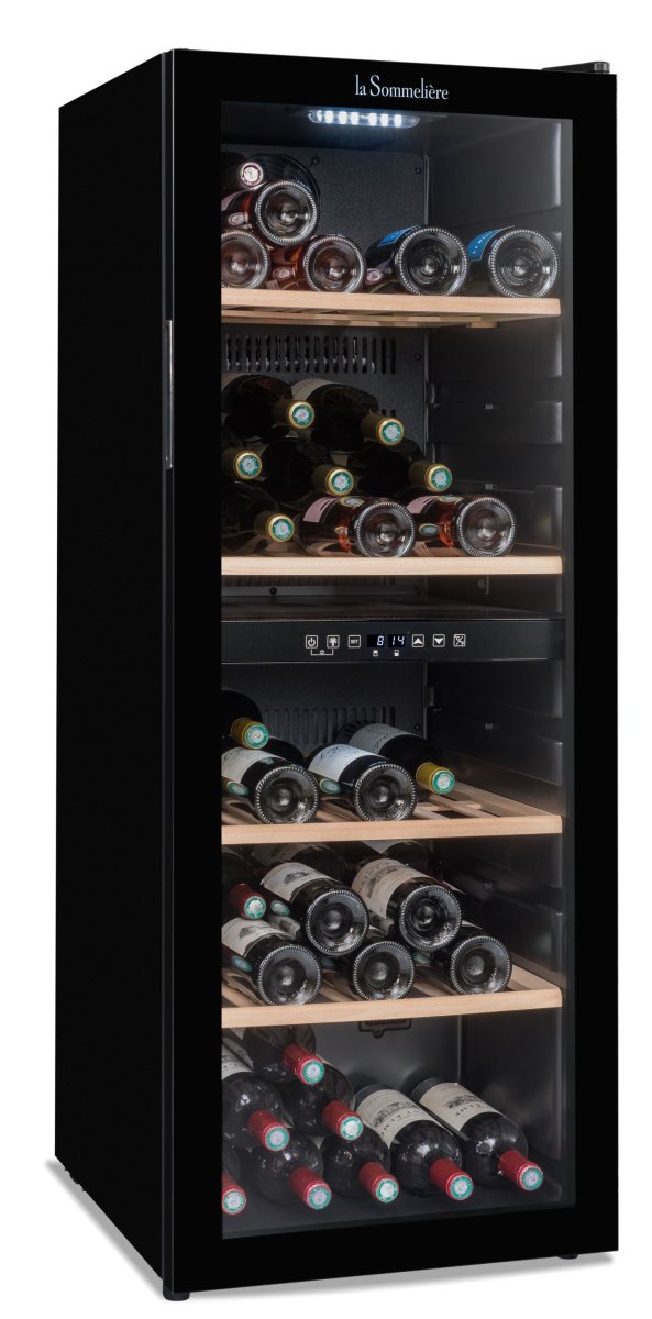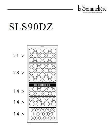 Винный шкаф La Sommeliere SLS90DZ предназначен для размещения 91 бутылки (типа Бордо). В двух независимых температурных отсеках можно хранить различные сорта вин.